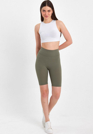 Kadın Yüksek Bel Toparlayıcı Sıkılaştırıcı Haki Fitilli Biker Şort Kısa Tayt