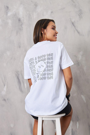 Have A Good Day Yazılı Gülen Yüz Tasarım Baskılı Beyaz Kadın T-Shirt