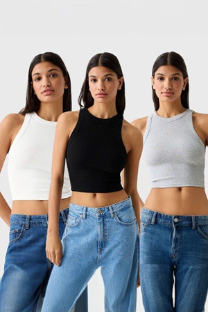 Halter Yaka Crop Seti - 3'Lü (Beyaz, Siyah, Gri)