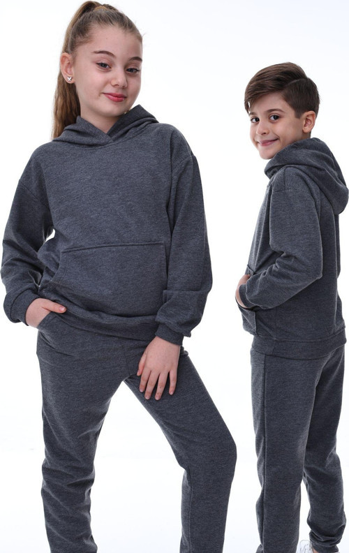 Zuzunga Basic Kapüşonlu 2 İplik Şardonlu Kanguru Cepli Çocuk Eşofman Takımı