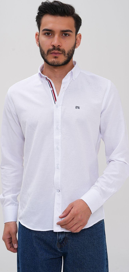 Şerit Detaylı Regular Erkek Gömlek Beyaz 3XL