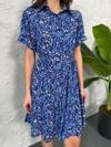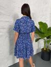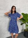 Baskılı Keten Elbise - Lacivert-Beyaz