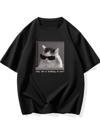 Baskılı Oversize Bisiklet Yaka T-shirt - Siyah