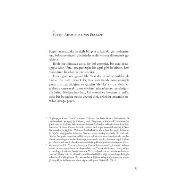Tüm bu sorularla beraber bu kitap, okuru, Batı geleneği ve Antik Yunan düşüncesine yeni bir açıdan bakmaya, kendiyle yakınlık kurmaya davet ediyor.