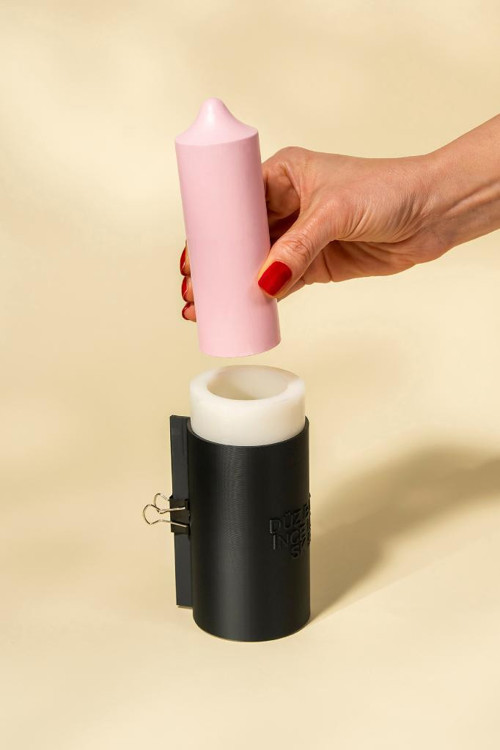 Kalıp içinden çıkan mum ölçüleri: içten içe: 4 cm çap x 12 cm yükseklik