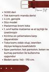 Yüksek kaliteli hakiki deri materyalden üretilmiş olup, uzun ömürlü kullanım sunar; %100 deri bileşeni sayesinde dayanıklılık ve şıklığı bir arada yaşatır; 4 cm genişliğindeki tasarımıyla rahat bir kullanım sağlar ve spor ayakkabılarla mükemmel uyum sergiler; Siyah renk seçeneğiyle kolayca kombinlenebilir ve her türlü kıyafetle uyumlu bir görünüm oluşturur;