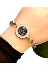 Şık tasarımıyla dikkat çeken bu bileklik, gümüş rengiyle zarif bir görünüm sağlar