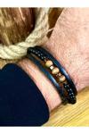 Bay Hediye %100 Deri Ve Boncuk Kombinli Erkek Bileklik Özel Boyut Net 23Cm (Türk El Üretimi)