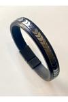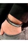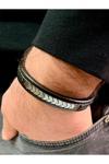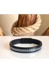 Bay Hediye %100 Deri Ve Hematit Kombinli Erkek Bileklik Boyut Net 22 Cm (Türk El Üretimi)