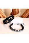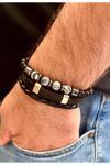 Bay Hediye %100 Deri&Hematit Kombinli 3Lü Erkek Bileklik Set 22 Cm (Türk El Üretimi)