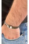 Bay Hediye %100 Deri&Krom Kombin Erkek Bileklik Net 22Cm (Türk El Üretimi)
