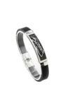 DERİ ÜZERİNE İŞLEMELİ PASLANMAZ ÇELİK AKSESUARLI ERKEK BİLEKLİK, KALINLIK 3 CM ÖZEL KUTUSUNDA GÖNDERİLECEKTİR.