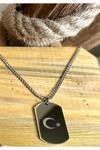 SINIF PASLANMAZ KARARMAZ ÇELİK KOLYE Kolye 60 CM UZUNLUK Ay Yıldız Kolye Ucu 3,5 cm uzunluk- 25, cm En Ölçülerindedir.