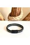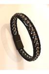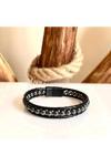 Bay Hediye Hematit Doğaltaş Doğal Deri Ve Çelik Erkek Bileklik Net 21Cm (Türk El Üretimi)