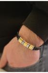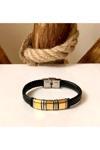 Bay Hediye Siyah&Altın Renk Deri Ve Kararmaz Çelik Mixli Erkek Bileklik 21 Cm