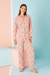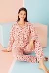 Kadın Uzun Kollu Kışlık Peluş Polar Önden Düğmeli Pijama Takımı