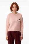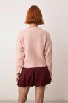 Ürün Özellikleri: Regular kalıp, 80% akrilik 20% polyester materyal, nakışlı/işlemeli desen, bisiklet yaka, düşük kol, triko kumaş, pembe renk, crop boy.
