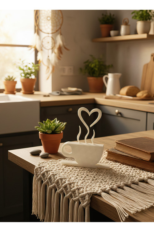 Modern tasarımıyla evinizin dekorasyonuna şıklık katan kalp şeklindeki kahve fincanı, günlük kullanımın yanı sıra dekoratif bir obje olarak da dikkat çeker