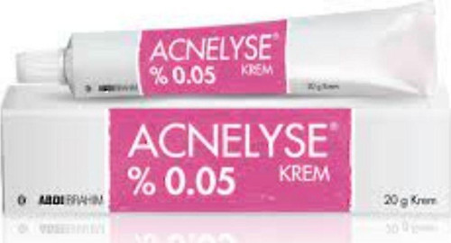 Acnelyse %0,05 Krem 20 gr. Acnelyse Krem’in etkin maddesi olan tretinoin veya diğer adıyla retinoik asit pek çok cilt durumunu iyileştirmek için kullanılan A vitamininin sentetik bir formudur. . Bunların dışında, güneşin zararlı ışınlarının neden olduğu yüzdeki ince kırışıklıkları, koyu lekeleri veya pürüzlü cildi tedavi etmek için kullanılır. . Hangi durumlarda kullanılması gerektiği kadar nasıl uygulanması gerektiği de önemli. Zira, tretinoin içeren herhangi bir ürünün aşırı kullanımı faydadan çok tahrişe neden olabilir. Ellerinizi ve sorunlu cildi yıkayıp kurulayın.