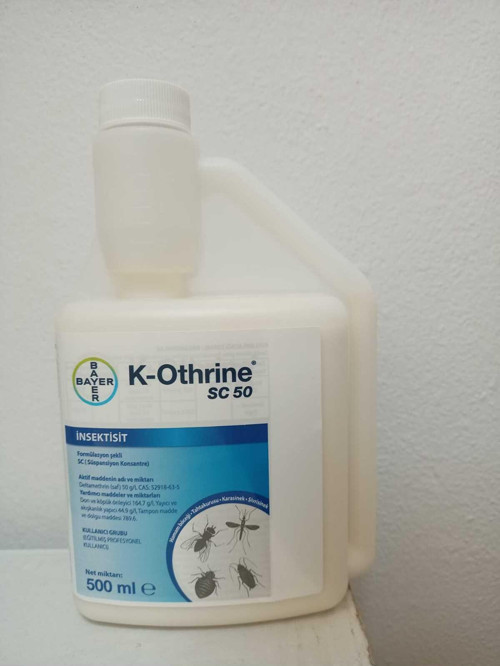K-Othrine Sc 50 Bayer 500 Ml 500ml’lik profesyonel kullanım için ambalajda… Ürün etiketinde karasinek, hamamböceği ve sivrisinek, gibi en çok kullanım alanı bulan haşereler için uygulama doz bilgileri verilmiştir. Ürün etken maddesi itibarıyla geniş spektrumlu insektisitler sınıfında olup, diğer haşereler üzerinde de etkilidir.