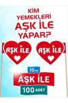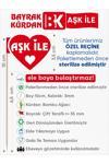 Çift taraflı "Aşk İle" yazılı, beyaz çerçeveli özel kalp şeklinde bayrak kürdanları içerir.