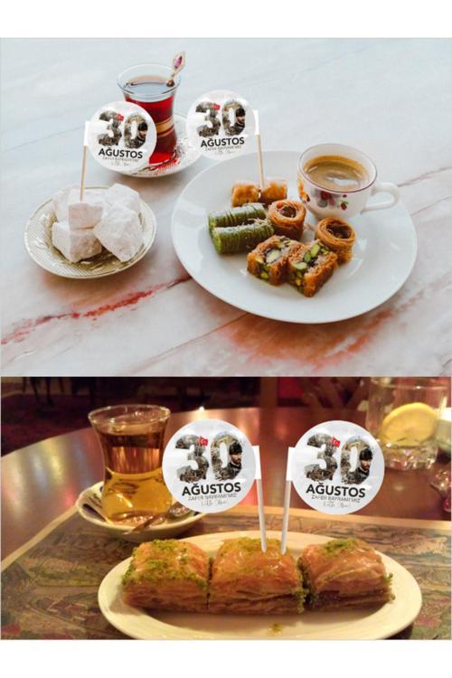 30 Ağustos Zafer Bayramı Kutlu Olsun yazılı Atatürk temalı bayrak kürdanlarımız ile Zafer Bayramı'nda ki lezzetli ikramlarınıza şık bir dokunuş yapın.