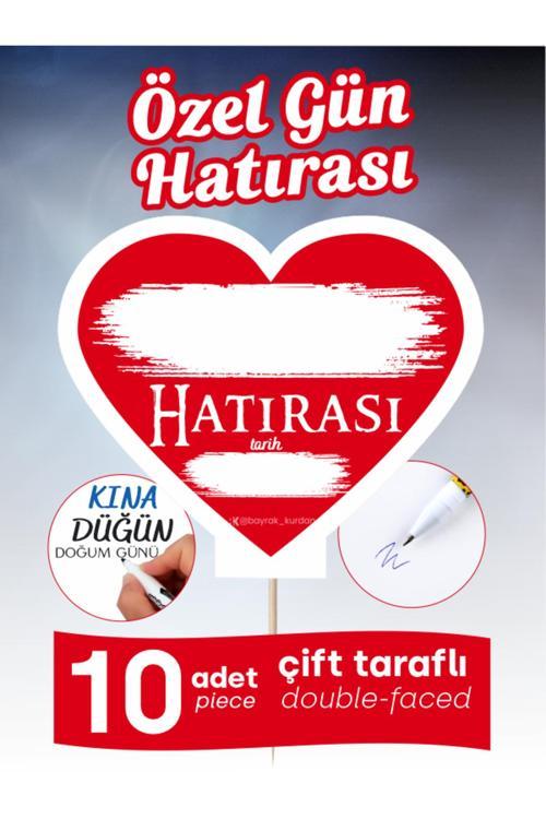 Bayrak Kürdan Özel Günlerde İsim Ve Tarih Yazabileceğiniz 10 Adet Kalp Şeklinde Çift Taraflı Hatıralık Özel Model