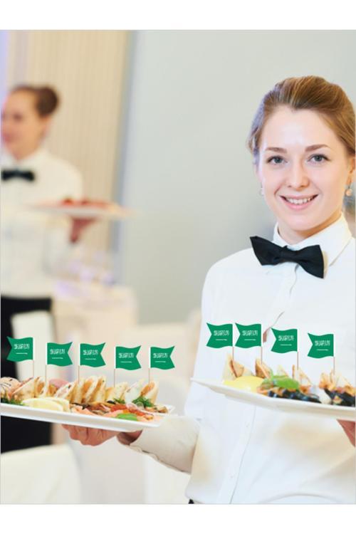 Resmi davet, açılış, organizasyonlar için kanepe, pasta, tatlı sunumları için özel süslü bayrak kürdanlar.