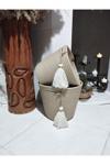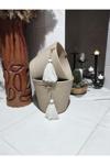Hasır rengi ip ile el işçiliğiyle makinede dikilmiştir.