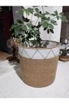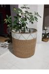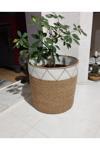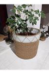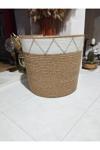 Hasır bambu rengi ve ekru pamuklu ip ile makinede dikilerek hazırlanmıştır Formu sert ve toktur.