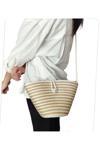 Günlük, plaj, tatil her ortamda ve her kombine uyumlu,hasır rengi ip ile makinede dikilmiştir.Çarpraz Askı ila tam boy uzunluk 75 cm civarındadır .