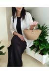 Polyester ve hasır materyal bileşeni, hafifliği ve dayanıklılığı bir arada sunarak konforlu bir taşıma deneyimi vaat eder