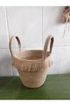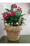 Doğal hasır ve jüt materyali ile üretilmiş, dayanıklı ve estetik bir tasarıma sahip sepet saksılık