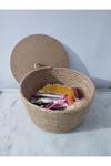 - Doğal hasır malzemesi ile üretilmiş, dayanıklı ve estetik bir depolama çözümü sunar.