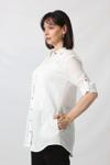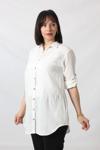 Moda Berray BB-092 BEYAZ GÜMÜŞ YALDIZLI GÜNEŞ DESENLİ KOLU APOLETLİ YANDAN CEPLİ TUNİK GÖMLEK KADIN BÜYÜK BEDEN