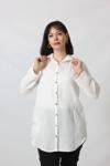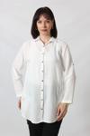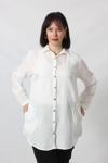 BB-092 BEYAZ GÜMÜŞ YALDIZLI GÜNEŞ DESENLİ KOLU APOLETLİ YANDAN CEPLİ TUNİK GÖMLEK KADIN BÜYÜK BEDEN