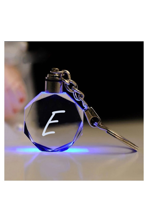 Be Hediyelik E Harf 7 Renk Yanan Led Işıklı Anahtarlık Harfli Isimli Anahtarlık Kristal Yedek Pil Hediye