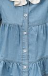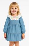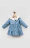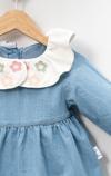Bebe Yaka Nakışlı Uzun Kollu Kız Çocuk Kot Elbise