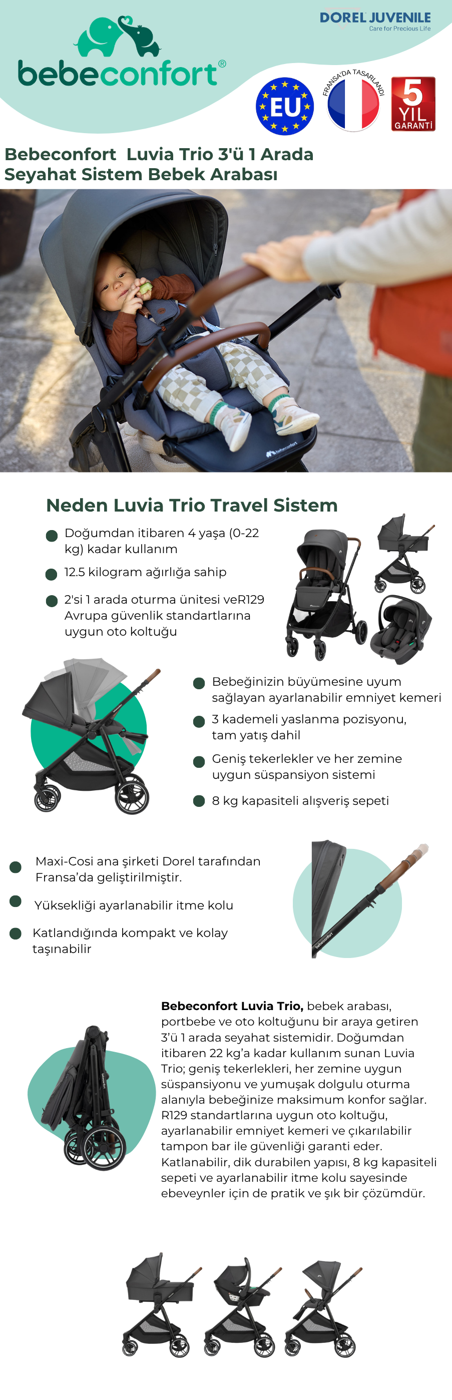 Bebeconfort Luvia Trio 3'ü 1 Arada Seyahat Sistem Bebek Arabası Mineral Graphite