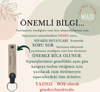 Uzun süreli kullanım için parfüm, şampuan, krem ve benzeri kimyasallar ile temasından kaçınınız. Kişiselleştirilmiş anahtarlığınız deriden üretilmiş olduğundan kimyasallar ile temizlemeyiniz. Temizleme işlemini sabunlu ve nemli bir bez yardımıyla sağlayabilirsiniz.