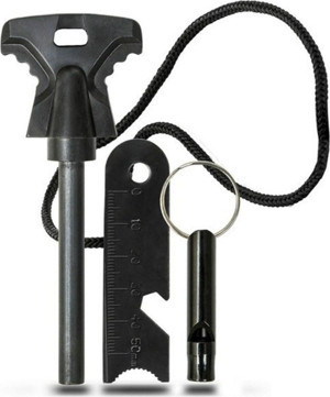 Acil Durum Magnezyum Çubuk Çakmaktaşı Hayatta Kalma Ateş Başlatıcı Çakmak Kiti Düdük Hediyeli (5314)