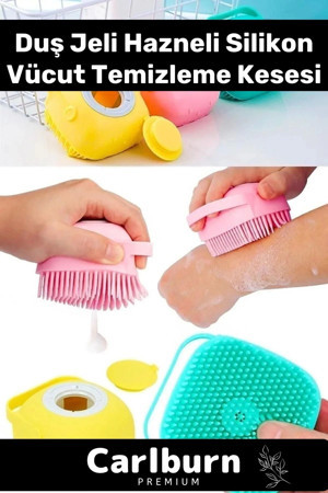 Carlburn Premium Duş Jeli Hazneli Silikon Fırça Kese Çok Amaçlı Vücut Temizleme Kesesi Banyo Lifi