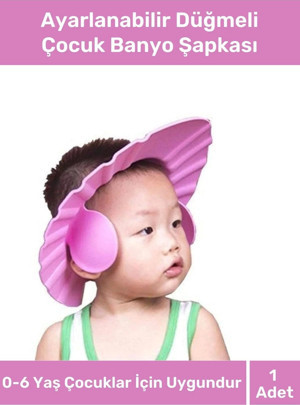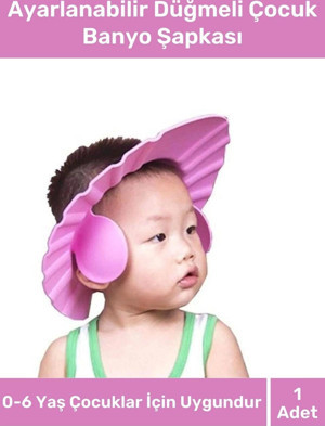 Ayarlanabilir Düğmeli Bebek Duş Başlığı Çocuk Küvet Göze Su Kaçırmayan Unisex 2'li Banyo Şapka Seti