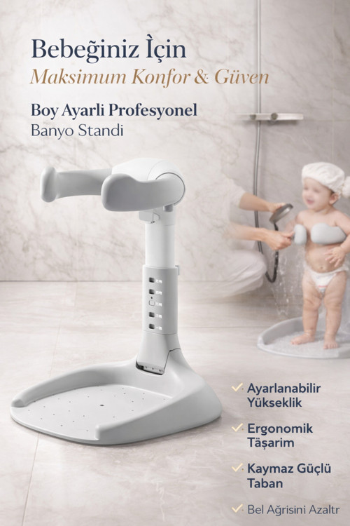 Bebek Banyo Yardımcısı Ayaklı Boy Ayarlı Katlanır Kaymaz Bebek Duş Yıkama Standı