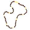 Ten teması ve ten ısısı ile etki eder. Kehribar kolye bölgesel etki eder. İpek iplikten yapılmıştır, her boncuğun arası ayrı ayrı düğümlüdür. Kehribar kolyelerin arkasında gizli plastik vidalı klips vardır. Kehribarın etkisini göstermesi kişinin bünyesine ve büyüme atağına bağlı olarak 24 ila 72 saat arasında zaman almaktadır. Kehribar kullanıldıkça ve tene temas ettikçe etkisini gösterir. Bebeklerde 0-3 yaş arası ortalama uygun standart ebat 32cm-34cmdir. Kolyeler herkes için en gözde süsler arasındadır, sanıyoruz bu süs merakı küçük yaşta başlıyor. Küçük yaşlarda süse merak salan birbirinden süslü ve şık takı modellerini sunuyoruz. Kehribar şıklığından ödün vermeyen küçüklerin severek kullanacakları bir aksesuar olacaktır. Ürünlerimizin tamamı el emeği ile üretilmiştir ve değerli taşlar nedeniyle ürün ağırlığında ± %10 sapma olabilmektedir.