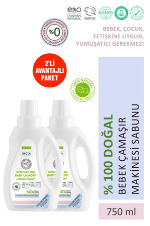 INCIA %100 Doğal Bebek Çamaşır Sabunu (Bitkisel Deterjan) Yumuşatıcılı Lavanta 750 ml X2 Adet
