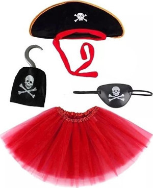 Korsan Kostüm Seti Kız Çocuk - Şapka, Etek, Kanca, Göz Maskesi