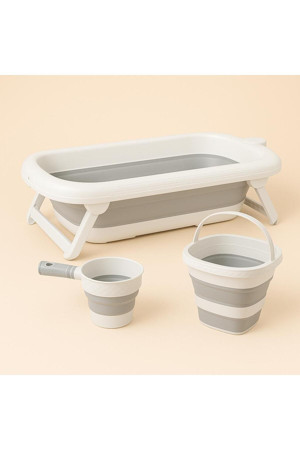 Zuu Baby 3'Lü Katlanır Bebek Yıkama Seti Bebek Banyo Küveti Büyük Boy - Su Kovası - Maşrapa Gri - Image 1