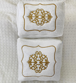 Dilex 2'li Hurç Set Çeyizlik Nişan Bohça Gelin Bohçası Damat Bohçası Kadife Gold Işlemeli Krem - Image 1