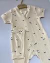 Bebeklerin rahatlığı düşünülerek tasarlanan Vauva bej kuş desenli tulum ve uyumlu şapka takımı, hem günlük kullanımda hem de özel anlarda şıklığıyla öne çıkar. Pamuklu dokusu, nefes alabilir kumaşı ve sevimli deseniyle bebeğiniz için konforlu ve zarif bir seçenek sunar.